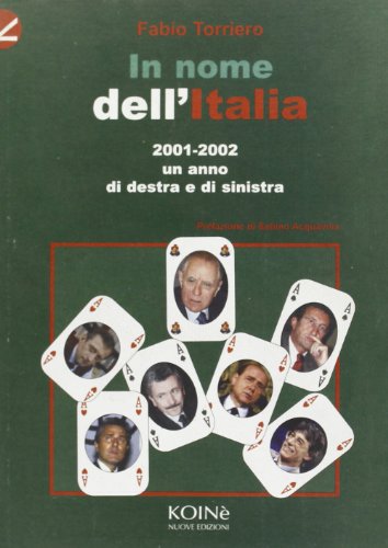 Acquista il libro In nome dell'Italia di Fabio Torriero in offerta; lo trovi online a prezzi scontati su La Feltrinelli. ISBN, 9788887509229. Editore, Koinè Nuove Edizioni. Autore, Fabio Torriero. Collana, Storia e storie. Genere, Socialismo e ideologie democratiche di sinistra. In nome dell'Italia. 2001-2002 un anno di Destra e di Sinistra. libro Torriero Fabio edizioni Koinè Nuove Edizioni collana Storia e storie, 2002. disp. incerta. Compra il libro In nome dell'Italia. 2001-2002 un anno di Destra e di Sinistra di Fabio Torriero; lo trovi in offerta a prezzi scontati su Giuntialpunto.it. libri di Fabio Torriero: tutti i titoli e le novità in vendita online a prezzi scontati su IBS. In nome dell'Italia. 2001-2002 un anno di Destra In nome dell'Italia. In nome dell'Italia. 2001-2002 un anno di Destra e di Sinistra è un libro di Torriero Fabio pubblicato da Koinè Nuove Edizioni nella collana Storia e storie : € 10 In nome dell'Italia. 2001-2002 un anno di Destra e di Sinistra Torriero Fabio, 2002, Koinè Nuove Edizioni € 10,54 (Prezzo di copertina € 12,40 ) Acquista online il libro In nome dell'Italia. 2001-2002 un anno di Destra e di Sinistra di Fabio Torriero in offerta a prezzi imbattibili su Mondadori Store. Scopri le ultime uscite e tutti gli altri libri scritti da Fabio Torriero. Fabio Torriero edito da Nuove idee. Libri - Brossura In nome dell Italia. 2001-2002 un anno In nome dell'Italia. 2001-2002 un anno di Destra e di Sinistra (Storia e storie) di Torriero, Fabio (2002) Tapa blanda. 1705. di Fabio Torriero. Non disponibile.